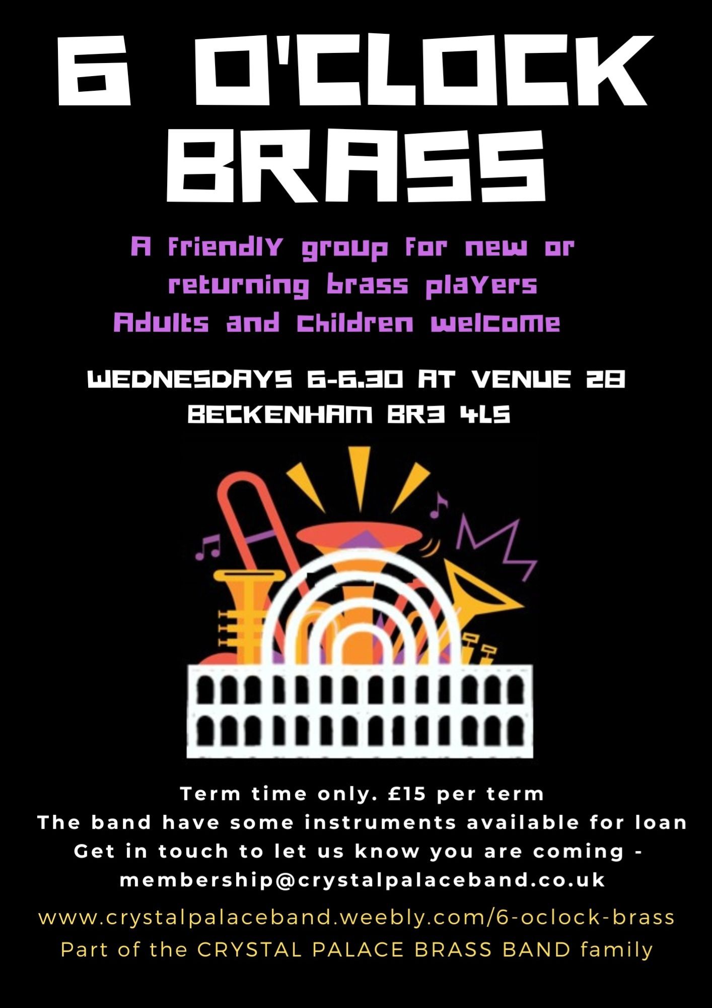 Come and join us if you fancy a go at brass banding with no pressure – ideal for returning players after a break or people new to brass playing who would like to play in a group.